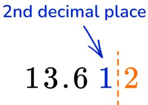 2Nd Decimal Place. The second decimal place to the right of the decimal point is called the hundredths place. Round 248.561 to 1 decimal place, then 2 decimal.