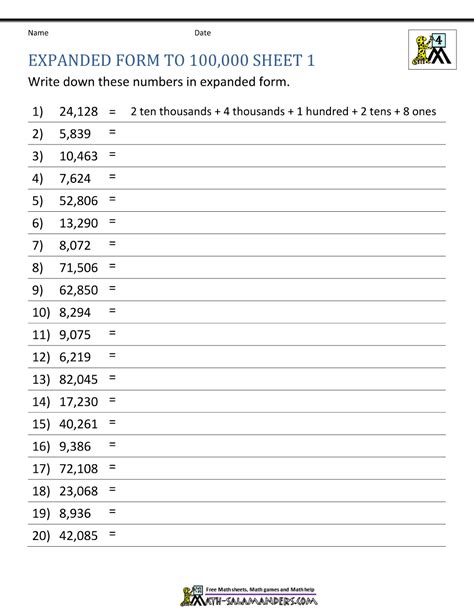 Web Expanded Form Worksheets For 3Rd Grade Download Print.